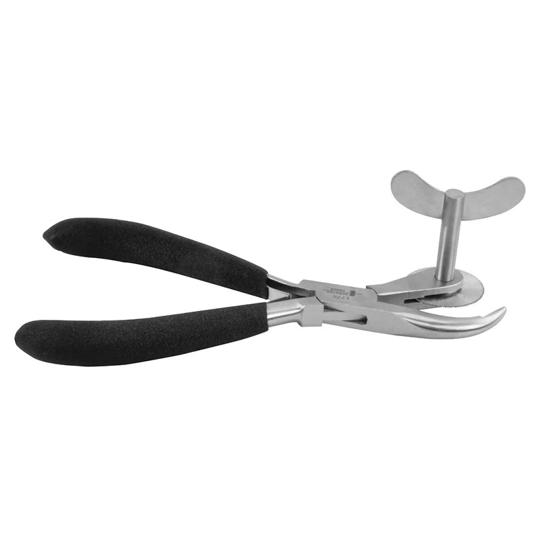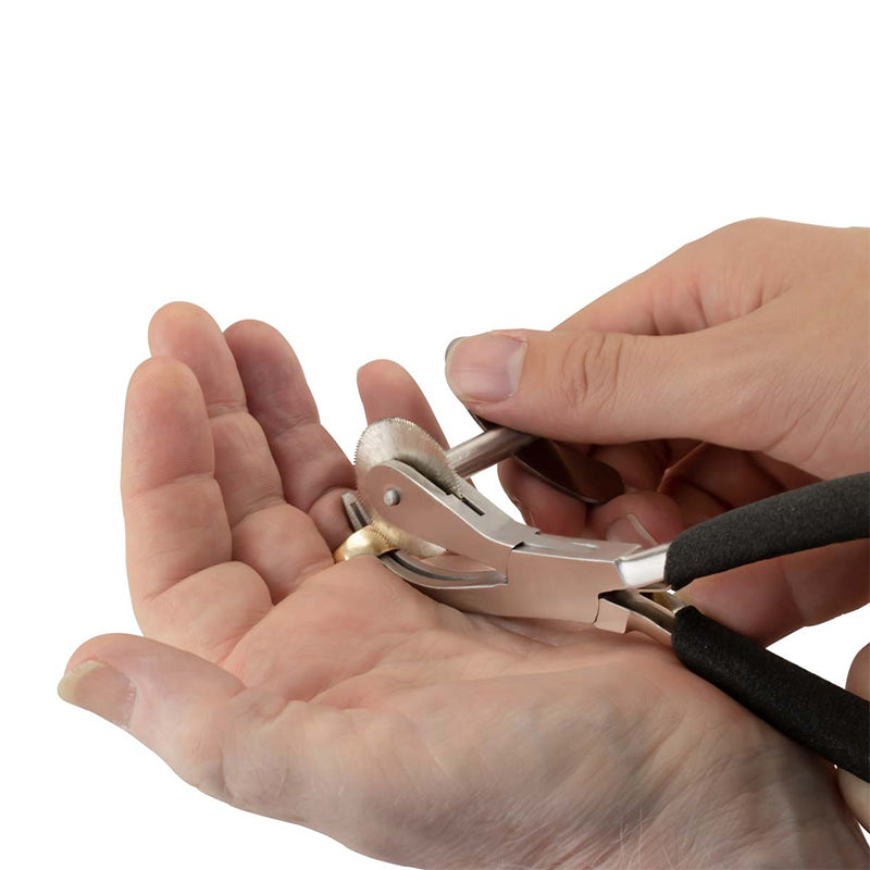 The Ring Cutter Pliers are manufactured to remove rings with a small circular saw that also features a protective guard. To remove the ring, you simply slide the lower jaw between the ring and the finger, and the blade will cut through the ring in seconds.