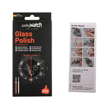 The polyWatch Glass Polish is a high-performance diamond polish for all mineral and sapphire glass watch crystals. It removes fine, small and medium scratches and can be used for a multitude of jobs: Watches, car, furniture, household, windows, and much more. The innovative "Diamond Polishing Technology" (DPT), in which micro-sized diamond particles removes scratches provides for professional results. The all-inclusive kit saves money and preserves the value of your most cherished pieces. The cost for the replacement of the watch crystal is also saved. Do not use on coated. surfaces.