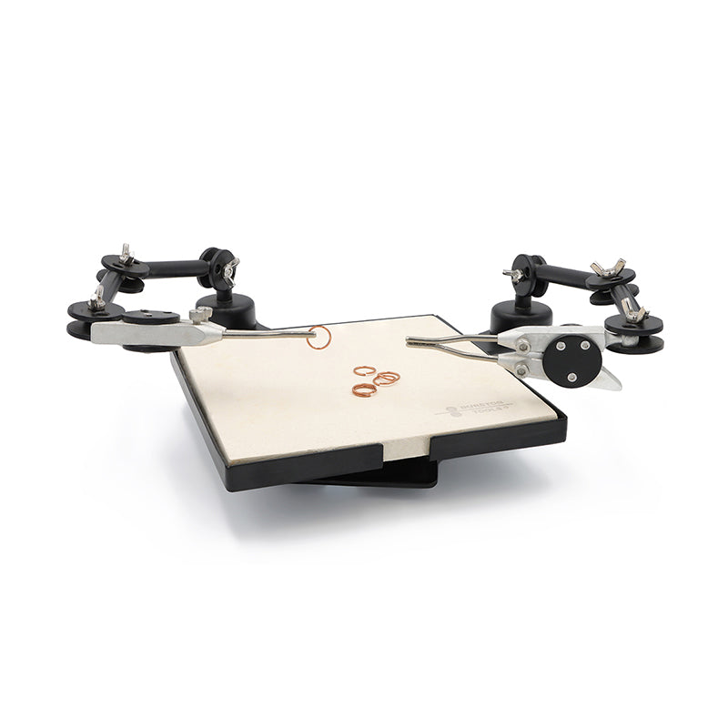 The Durston 3rd Hand Soldering Station is not only user-friendly but also designed to reduce bench clutter, making it a valuable addition to any jeweller’s workspace. The combination of flexible third-hands and a rotating platform ensures that even the most complex soldering tasks become simple and stress-free. Made from highgrade steel and Calcium Silicate composition, it’s built for longevity and consistent performance.