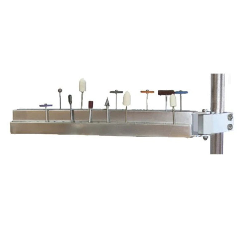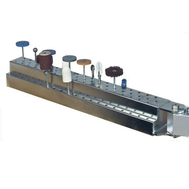 Equip your bench with a two-tier bur, drill and tool holder that not only takes up no precious work space but saves the space now taken up by the many tools and accessories you need throughout the day! This 12"L x 2"W arm is specifically designed to attach to your Foredom® flex shaft stand and base workbench system (use the Allen wrench included with the stand).